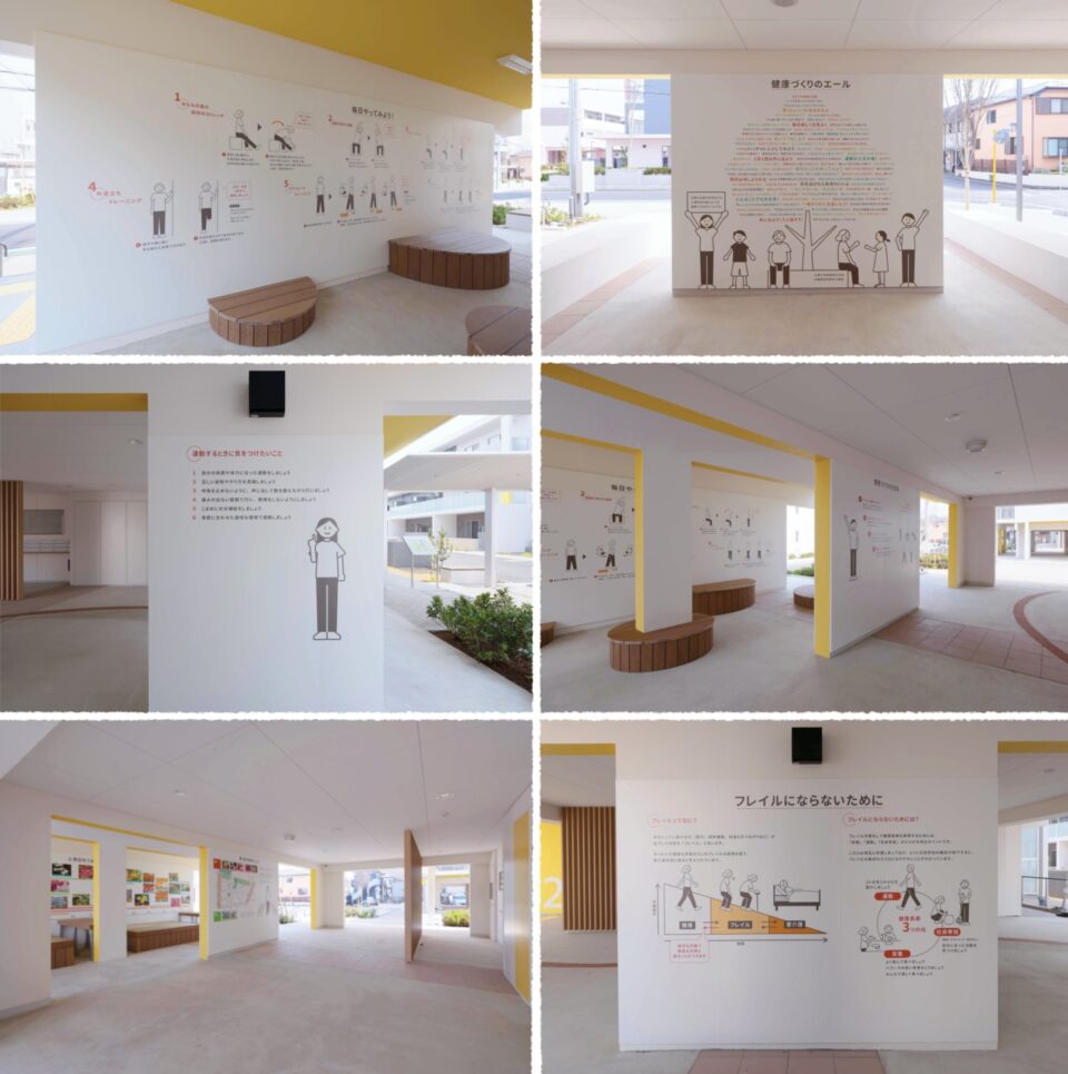 気軽にできる運動の紹介や団地内の散策マップなど、シンプルで親しみを感じるイラストを用いてご提案しました。